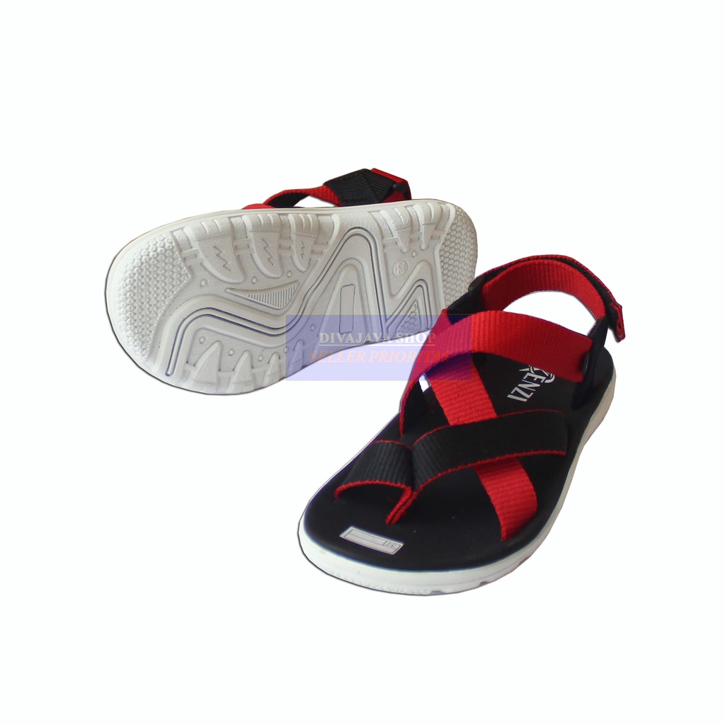 Harga Sandal Anak Kenzi Type Tuff Tali Jempol/Fashion Sandal Anak Terbaru/Merah Hitam/Divajaya Shop
