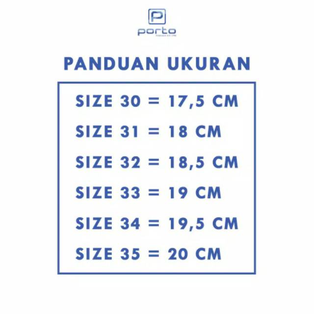 Produk ini memiliki 6 Variasi Ukuran yaitu : 30,31,32,33,34,35,