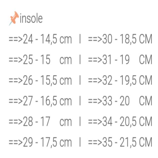 Produk ini memiliki 12 Variasi Ukuran yaitu : 24,25,26,27,28,29,30,31,32,33,34,35,